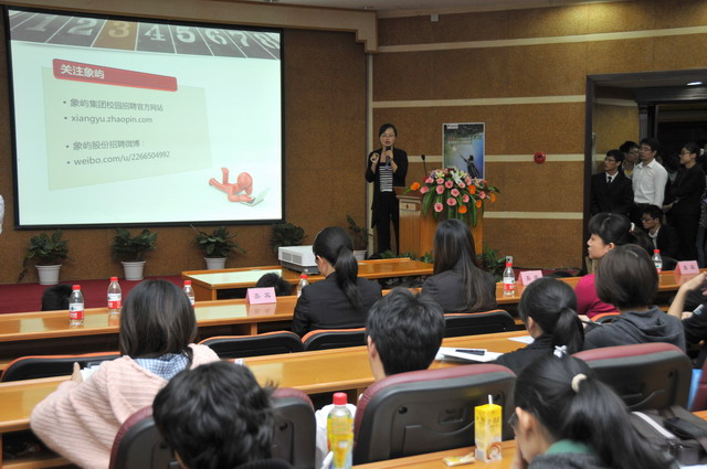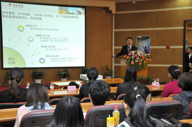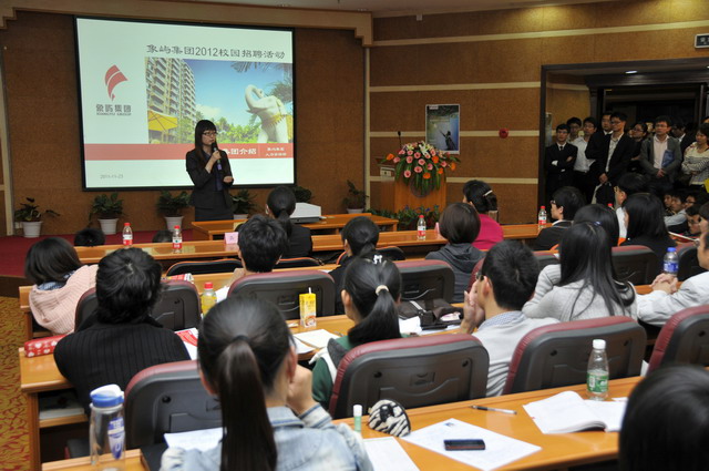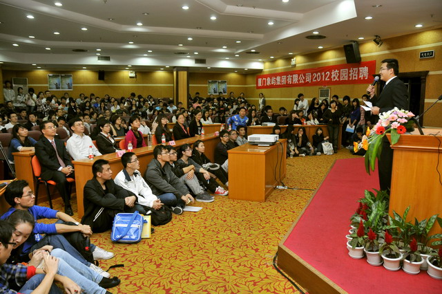 2012年象嶼集團全國校園招聘首場宣講會于11月23日晚在廈門大學拉開帷幕。集團人力資源總監(jiān)林志勇、象嶼股份人力資源部經(jīng)理林焱為同學們進行了精彩的宣講并回答了同學們現(xiàn)場的提問,鼓勵廈大的優(yōu)秀學子們加入到象嶼的大家庭。據(jù)悉,此次宣講會吸引了近500位應(yīng)屆生參加,場面火爆,提問環(huán)節(jié)積極踴躍,會后現(xiàn)場收到簡歷近500 份。