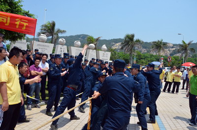 陽光明媚、海浪輕拍,大雨洗滌過的海濱分外清新。員工和官兵代表們絡(luò)繹不絕、配合默契撿拾木棧道沿途垃圾,志愿者紅色馬甲與海軍藍(lán)色制服錯(cuò)落分布,構(gòu)成海灘一道獨(dú)特亮麗的風(fēng)景線。員工子女們也顧不得滿頭大汗,興沖沖地?fù)炱鸨缓K疀_上岸的雜物,用心體會(huì)著環(huán)保的理念和勞動(dòng)的快樂。音樂廣場上的拔河比賽和趣味游戲?qū)F(xiàn)場氣氛推向高潮。來自集團(tuán)和海軍南方局的16支代表隊(duì)奮力拼搏,拉拉隊(duì)員激情吶喊,充分展現(xiàn)了廣大員工和現(xiàn)代軍人團(tuán)結(jié)拼搏的精神風(fēng)貌。經(jīng)過激烈角逐,象嶼碼頭、海軍南方局代表隊(duì)拔得頭籌,分獲甲、乙組冠軍。由貿(mào)易、建設(shè)、速傳、資產(chǎn)四家工會(huì)精心準(zhǔn)備的趣味游戲吸引了眾多員工及家屬參與,“龍鳳戲珠”、“呼啦行進(jìn)”、“勇闖長繩”、“向快樂出發(fā)”等環(huán)節(jié)異彩紛呈,歡呼聲、叫好聲,高潮迭起。