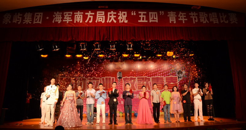 五月的花海,飛揚(yáng)的青春!為慶祝中國(guó)共產(chǎn)主義青年團(tuán)成立90周年,象嶼集團(tuán)團(tuán)委和海軍南方局團(tuán)委共同舉辦 “建功立業(yè),放歌青春”慶祝“五四”青年節(jié)歌唱比賽,來(lái)自?xún)蓚€(gè)單位的16名決賽選手登臺(tái)獻(xiàn)藝,在廈公司領(lǐng)導(dǎo)、員工,以及共建單位海軍南方局官兵近三百五十人到場(chǎng)吶喊助威。