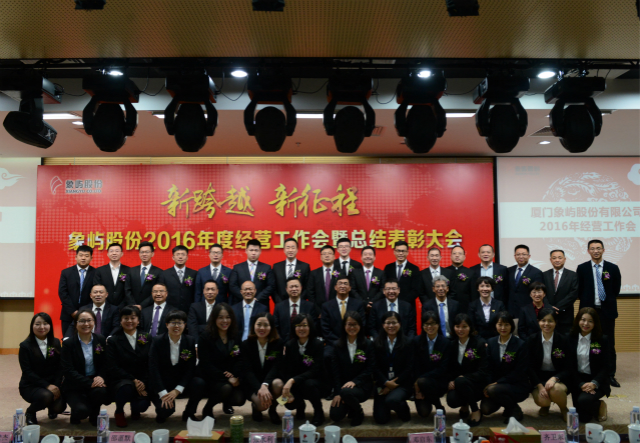 1月16日,象嶼股份2016年度經(jīng)營工作會暨年度總結(jié)表彰大會在廈門國際航運(yùn)中心隆重召開。會議由股份公司鄧啟東總經(jīng)理主持,象嶼集團(tuán)董事長張水利、副總裁陳方、黨委副書記邵薀默等領(lǐng)導(dǎo)蒞會,象嶼股份經(jīng)營班子、旗下各投資企業(yè)高管及員工代表130余人參加了會議。