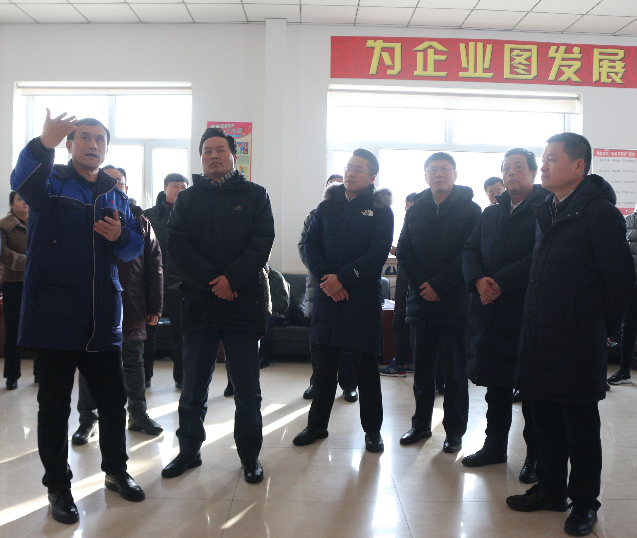 黑龍江省糧食局局長于明海,黑龍江省農(nóng)發(fā)行行長陸建新,佳木斯市委副書記、市長邵國強,佳木斯副市長黃士偉,富錦市委書記李源波,富錦市委副書記、市長郝旺,富錦市委常委、副市長楊治冶,富錦副市長任鐵軍,中儲糧黑龍江分公司黨委副書記、副總經(jīng)理宋海河及有關(guān)人員陪同調(diào)研。