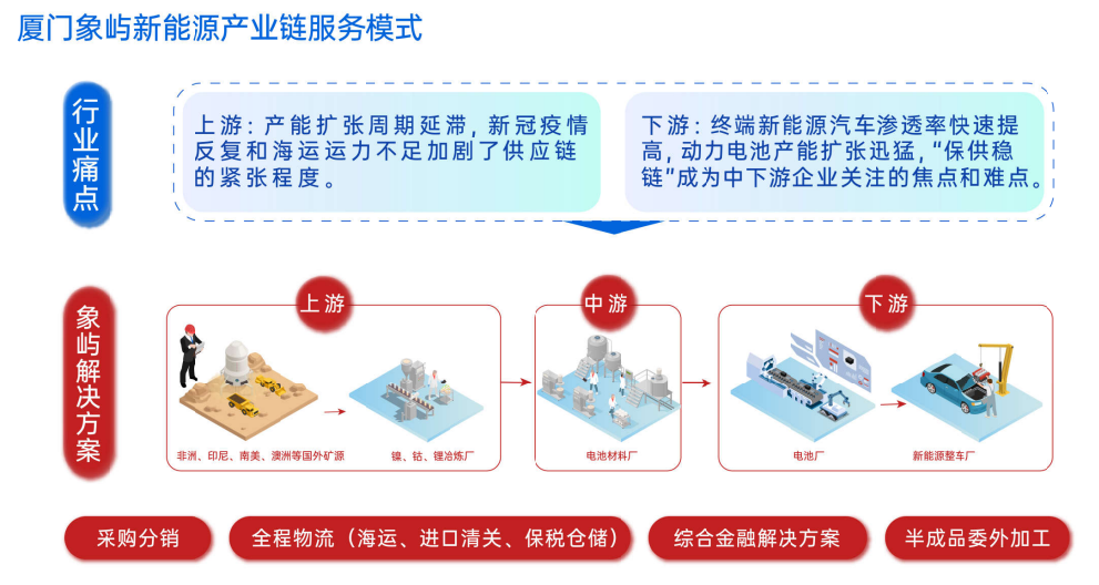 象嶼股份始終堅(jiān)持全產(chǎn)業(yè)鏈經(jīng)營服務(wù),踐行資源端國內(nèi)外雙引擎發(fā)力,國際圍繞澳洲、非洲和南美資源富集地,國內(nèi)重點(diǎn)布局青海、四川,打通礦產(chǎn)品到半成品再到下游產(chǎn)成品的加工通路,有效串聯(lián)海內(nèi)外全鏈路客戶,打造了全程供應(yīng)鏈綜合服務(wù)方案。